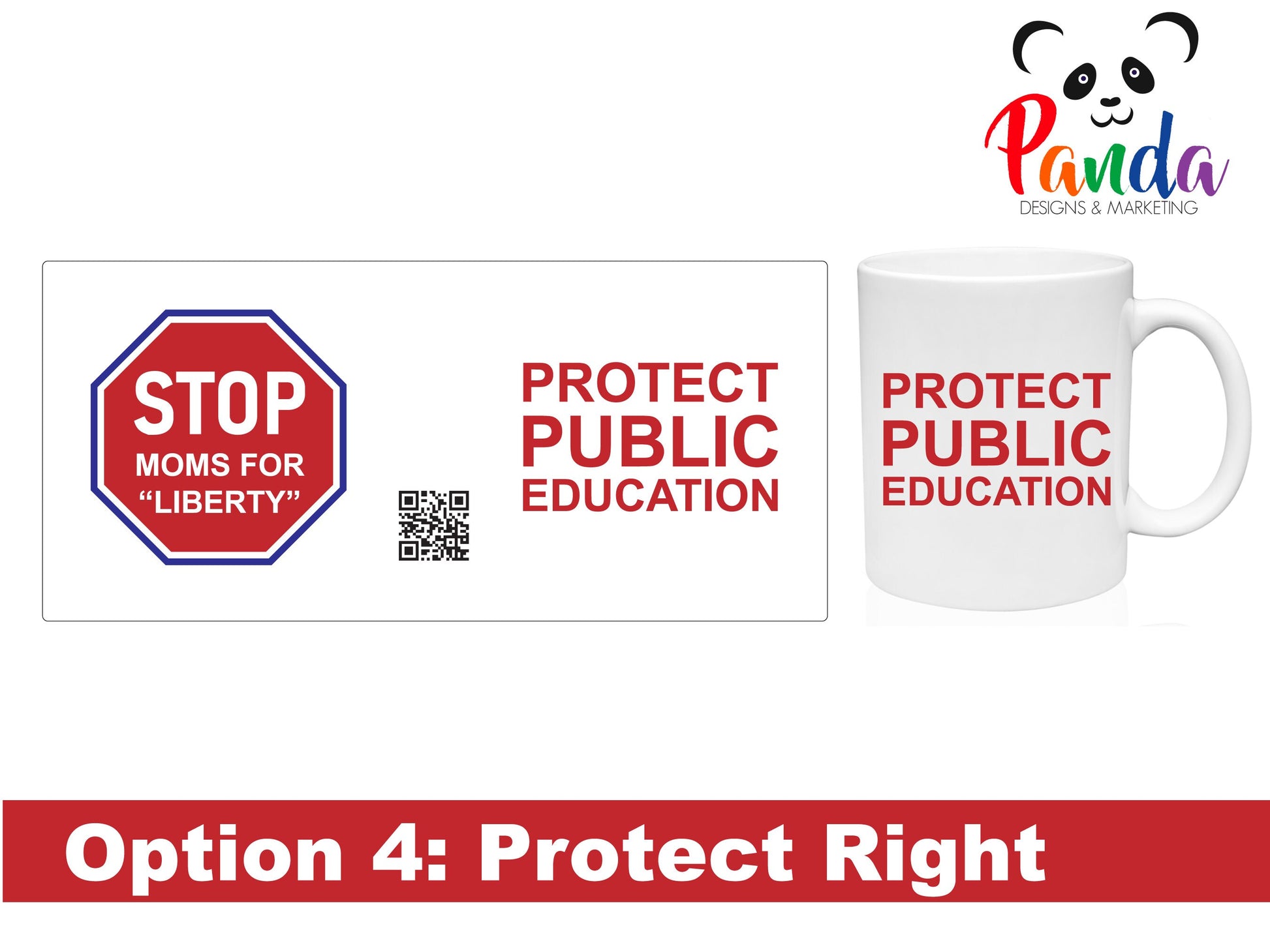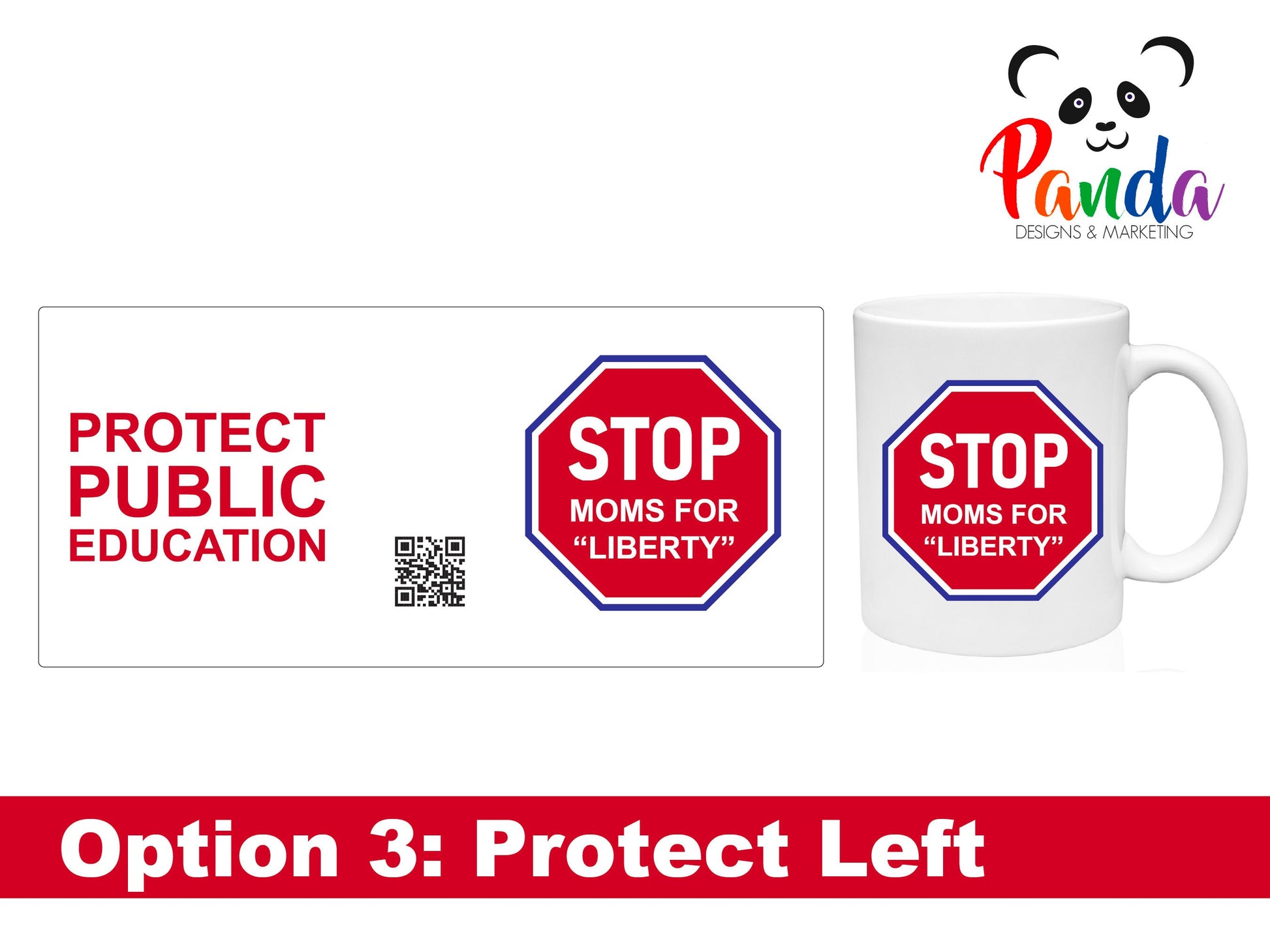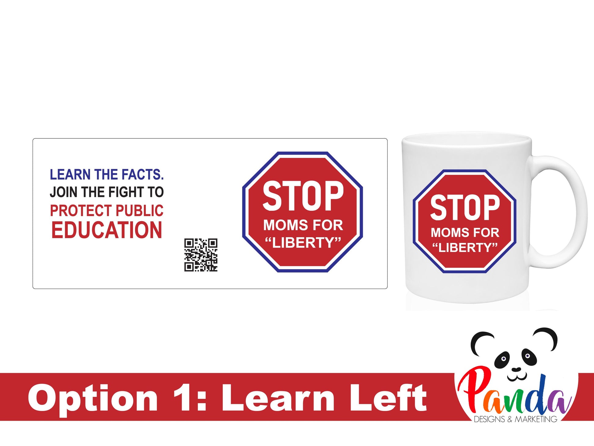 Choose from two sizes: the 11oz option with white or red trim, or the larger 15oz version with a white base. No matter the size, each mug showcases the STOP Moms for Liberty logo alongside powerful slogans advocating for the protection of public education. The inclusion of a QR code enables individuals to easily access the SM4L Linktree, where they can find essential facts and join the fight for inclusive and equitable education.