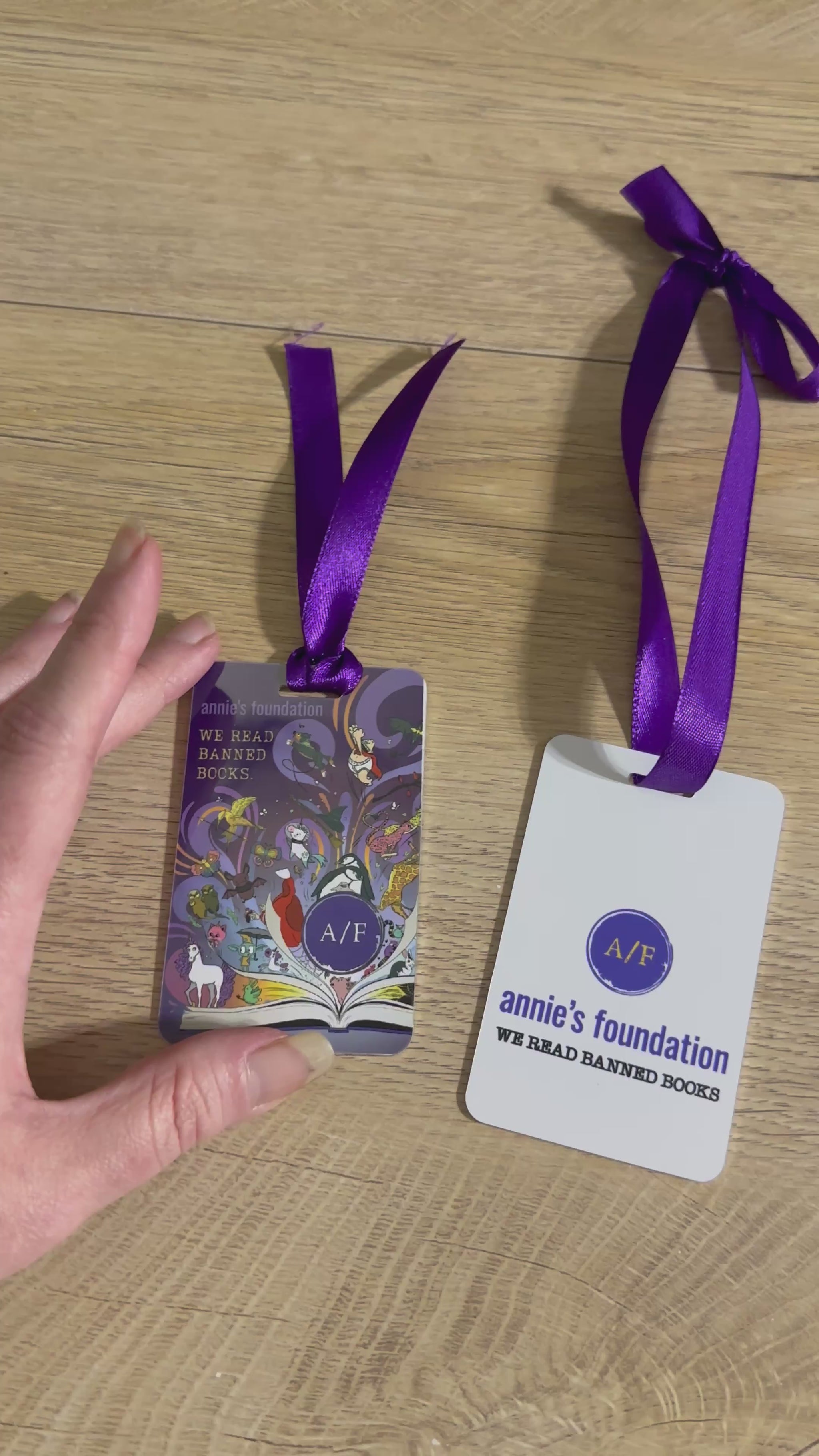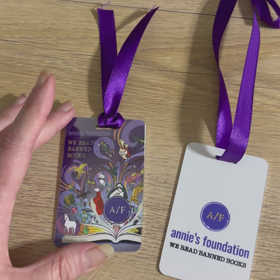 This double-sided sublimated metal bookmark / ornament features Annie’s Foundation’s magical full-color artwork on one side and their official logo with We Read Banned Books on the reverse.
