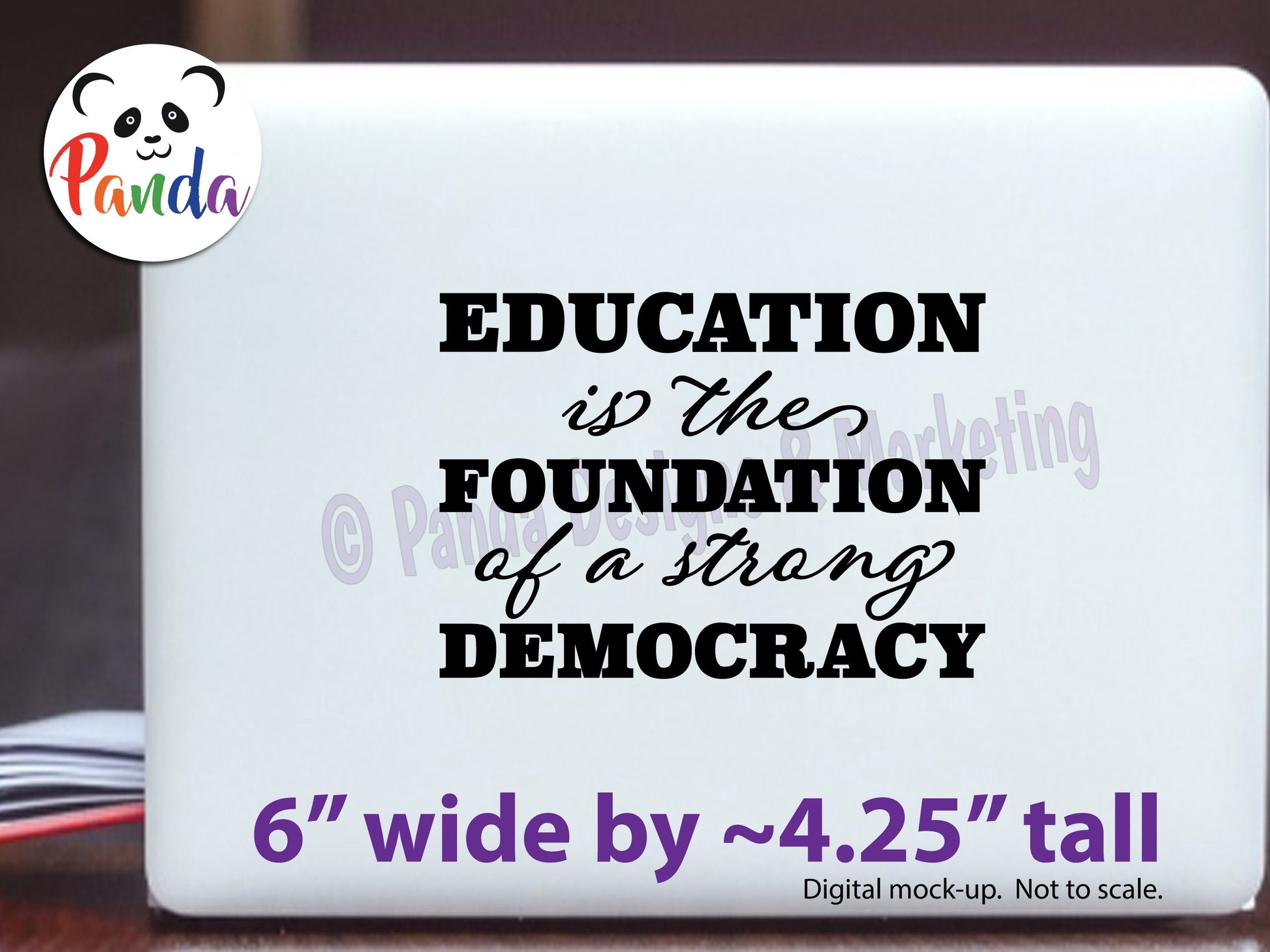 Die-cut permanent vinyl decal bumper sticker reads "EDUCATION is the FOUNDATION of a strong DEMOCRACY." New and improved design!