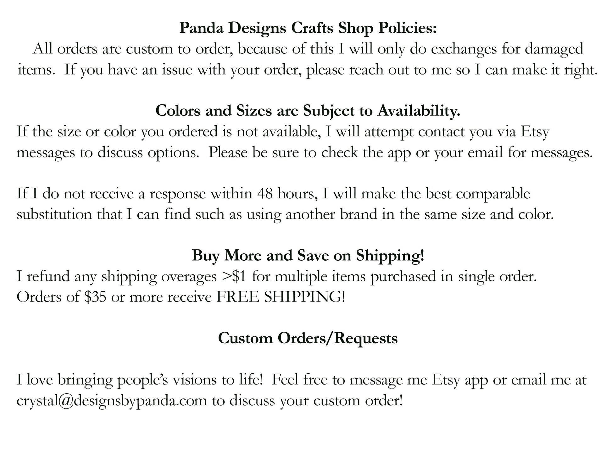 Other colors, sizes, and imprint colors may be available! Message me ahead of time to check availability.